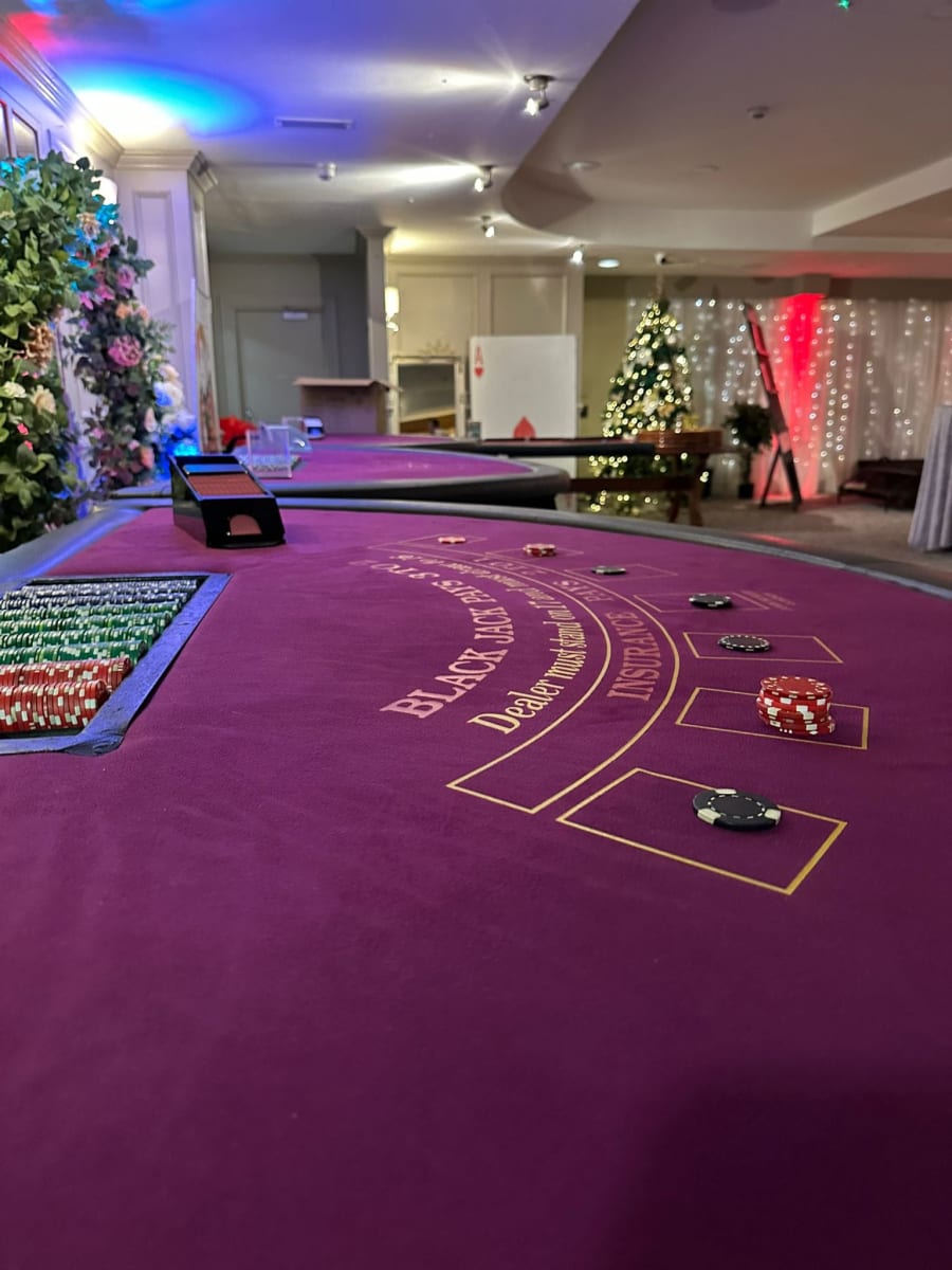 Fun Casino Blackjack Table in Ireland, Northern Ireland, Dublin, Galway, Limerick, Mayo, Sligo, Donegal, Leitrim, Roscommon — Step into a high-energy casino experience. Smooth felt. Professional chips. Sleek shuffles. Our fully trained croupiers deliver fast, fair play and engage guests at every skill level. Perfect for corporate nights, weddings, Christmas parties, and private celebrations. 🎲🃏✨